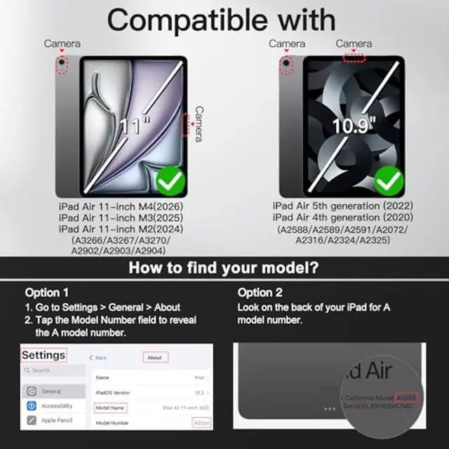[Compatibility] NOT for iPad (A16) 11th/10th Generation (2025/2022). Supports Pencil Pro/Pencil (USB-C)/Pencil (2nd). Designed for iPad Air 11-inch M4/M3/M2 (2026/2025/2024), iPad Air 5/4 (2022/2020 5th/4th generation 10.9 -inch).