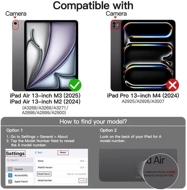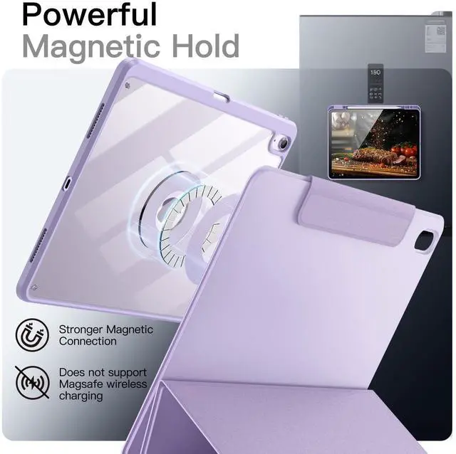Fit iPad Models: A3268 / A3269 / A3271 / A2898 / A2899 / A2900. Please Go to Settings > General > About, then tap the Model Number field to reveal the A model number ^^ [Multi-Angle Viewing] The case supports 360-degree magnetic rotation and can be viewed horizontally or vertically. The adjustable standing height design optimizes user viewing experience and feel, making typing, reading and watching more comfortable ^^ [Detachable Magnetic Cover] Can be attached or detached as needed. The magnet is strong and makes the back case attach firmly to the front cover, offering your device with full-body protection against drops and scratches ^^ [Clear Back Case] Can be removed entirely for gaming, ergonomic cooking, or adsorbed to any iron metal surface, such as a refrigerator. Built with hard PC and flexible frame to protect your device with or without a front cover. Also, precise cutouts give you full access to device''s speaker, camera and so on ^^ [Multiple Functions] Built-in pencil holder, always keeps your Pencil with your device (Note that Pencil NOT Included). The magnetic clasp folds over for extra security can protect your device.
