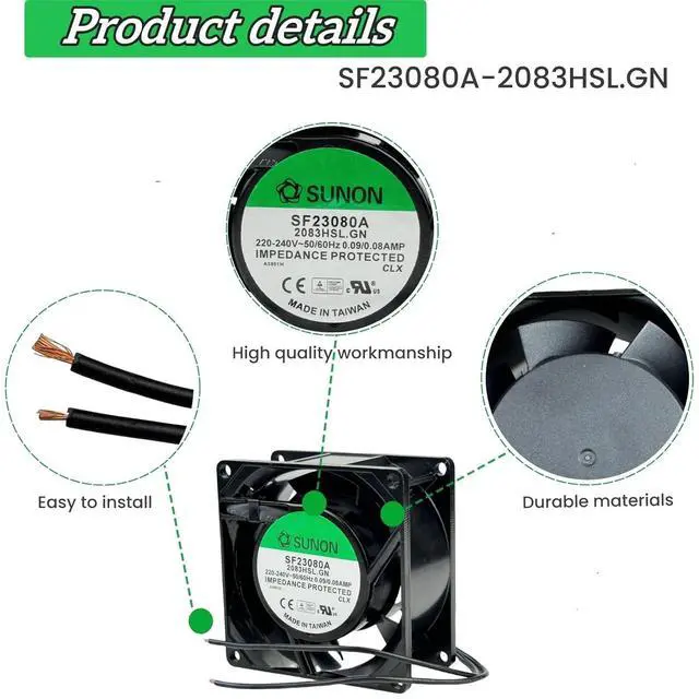For SUNON SF23080A-2083HBL GN SF Series Cabinet air cooling fan