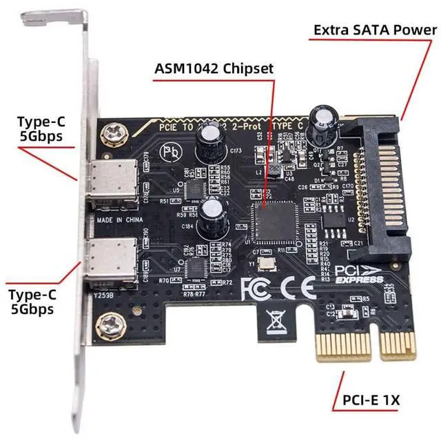2) ASM1042 chipset, Support 5Gbps data rating and 5V 3A power.