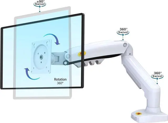 FULLY ADJUSTABLE: The durable gas spring system ensure easy positioning of your monitor in any desirable position, Personalize your workstation any way you want; Support C-clamp or Grommet installation, Heavy-duty construction and super quality materials keep your arm mount stable-This is the sturdiest desk mount on the market.