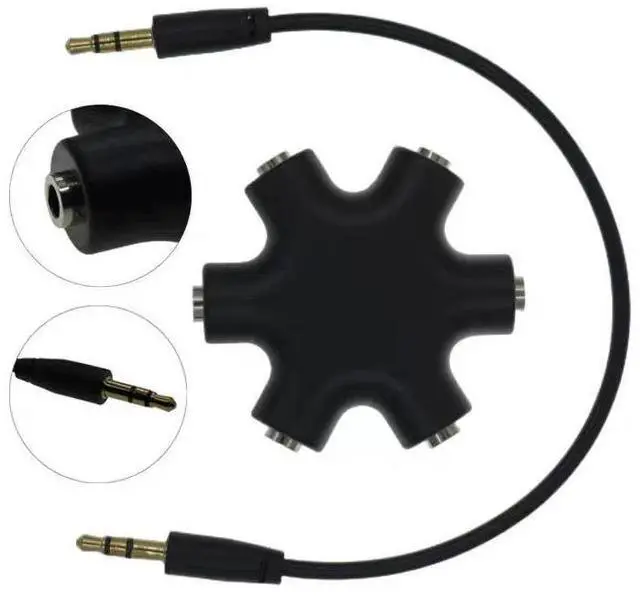 Five-channelaudiosplitterwith3.5mmsnowtlake connector-a five-channel audiomusicamong fve headphones.
