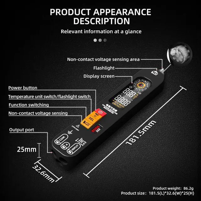 Three-hole large screenPen multimeterIntelligent identification andanti-burn protection EBTN display