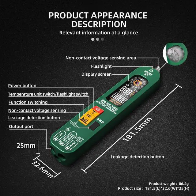 BSlDE S8 Leakage Detector Multimeter-Fully Automatic Intelligent Anti-short Circuit Electrician Maintenance Home Digital Universal Meter