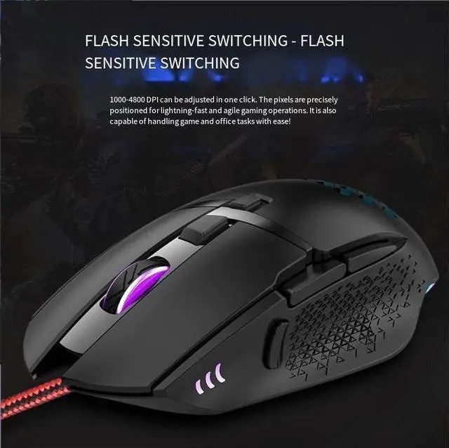 FLASH SENSITIVE SWITCHING-FLASHSENSITIVE SWITCHING 1000-4800 DPl can be adjusted in one click. The pixels are preciselypositioned for lightning-fast and agile gaming operations. lt is alsocapable of handling game and office tasks with ease!