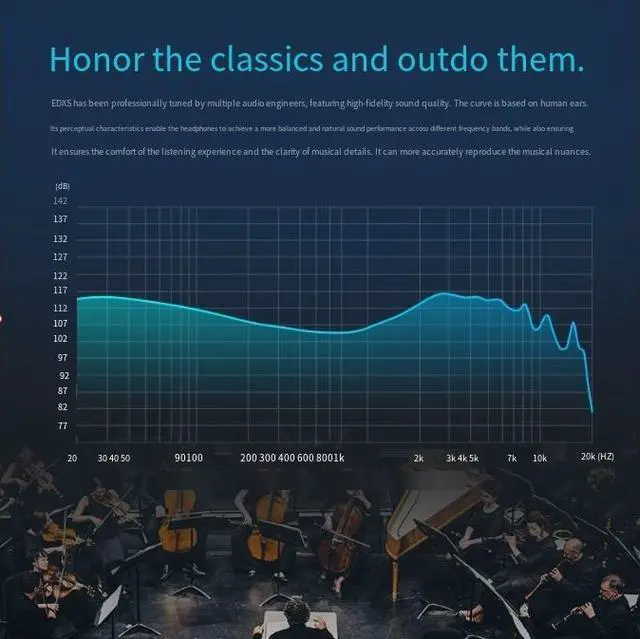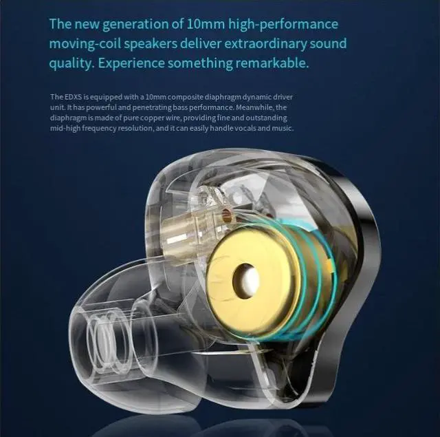 Model EDXS Sensitivity: 106 ± 3 dB Plug type 3.5 mm Silver-plateddual-core wire lmpedance 19 Frequency response range: 20 40, 000 Hz Pin-type 0.75 mm Wire length: 120 5CM