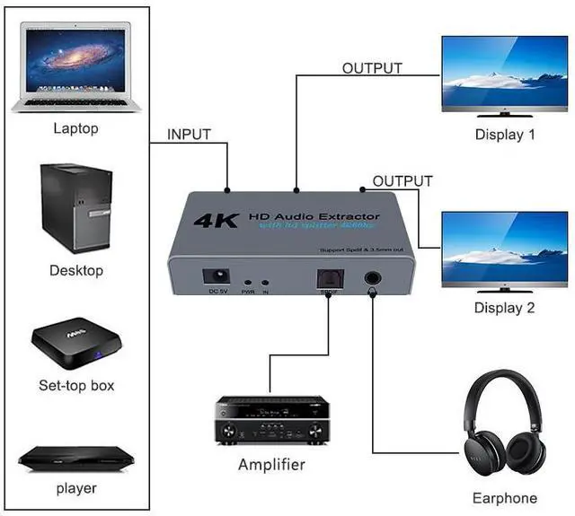 High-defnition HDMl audio splitter - 4KHD Audio Extractor - 2-in-2-out distributor switcher