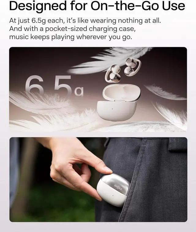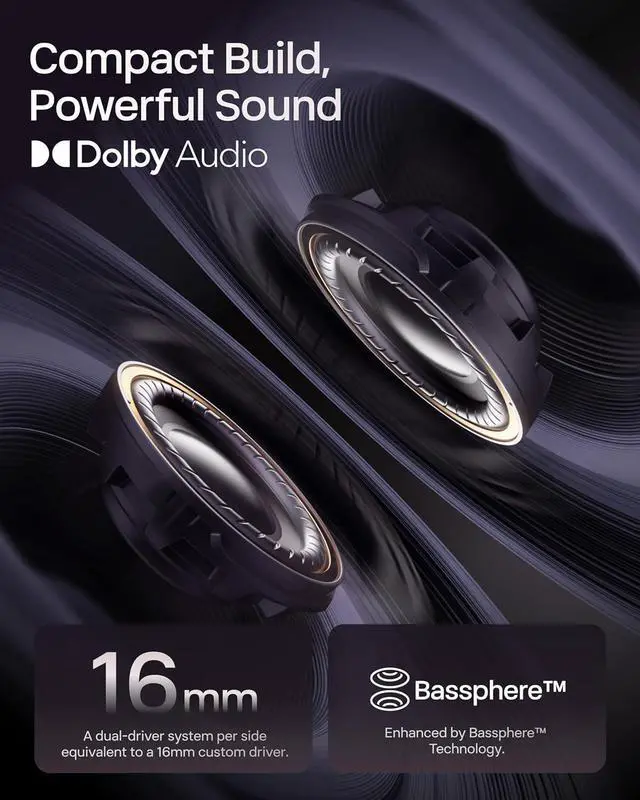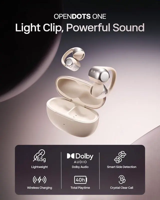 Rich, Open-Ear Audio - Shokz signature open-ear design keeps you connected to the world while you experience the pocket-sized power of OpenDots ONE's premium Dolby Audio and Bassphere Technology.