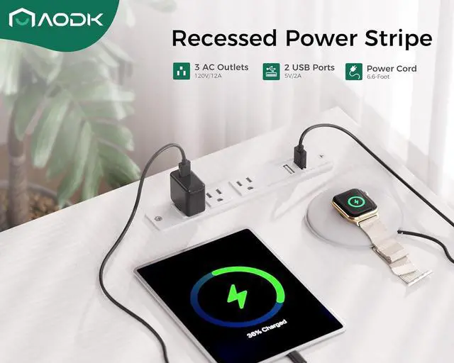 Power Outlets & Charging Ports AODK computer desk is equipped with 3 power outlets & 2 USB charging ports for your electronic device. You can easily and conveniently charge smart phone, gaming gear and Bluetooth devices when you are working or playing games.