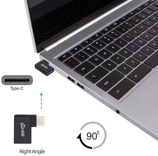 USB-C Type C to USB 3.0 Female OTG Adapter Right Angled 90 Degree for Mac Laptop Cell Phone The angled type Allowing you to connect it to a female port, even if space around the port is limited. Reversible Design Type C Male Connector to A Female Data Adapter With OTG Function, Support 5Gbps data rating Work for Laptop Tablet Phone to Hard Disk Drive Flash Disk USB Mouse etc.