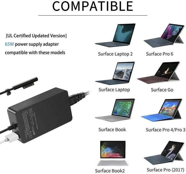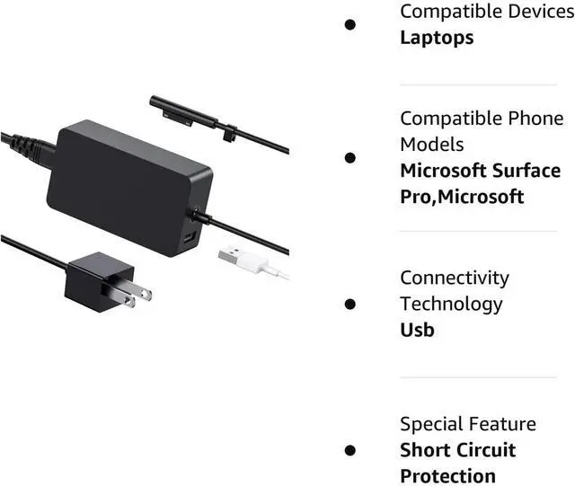 5. Package Contents: Includes 1x 65W Surface Pro Charger and 1x 3.3ft US LISM AC Cord