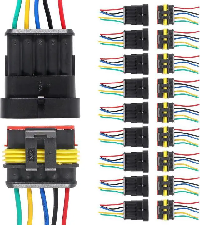 10 PACK 5 Pin Way Electrical Wire Connector Male Female Plug Socket Quick Disconnect Waterproof Plug Play for Car, Truck, Boat, and Other Wire Connections