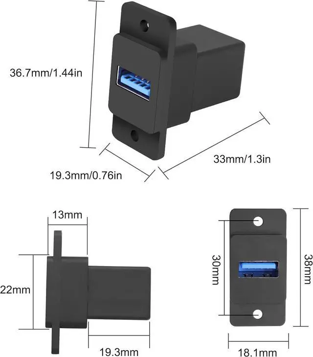 High Quality and DurableThe USB 3.0 pass-through panel connector housing is made of all-plastic material, reinforced nylon PA6BG33, which is tough, corrosion-resistant, wear-resistant, durable, has a long service life, stable connection.
