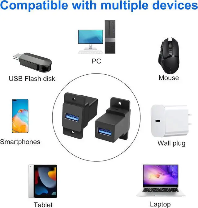 Supports data transfer and chargingThis USB A female to female Rectangular socket has a maximum transfer speed of up to 5Gbps and is backward compatible with USB 2.0. It enables high-speed data transfer without delay, allowing you to quickly transfer files and data in seconds, and can also be used to charge devices with USB-A ports.