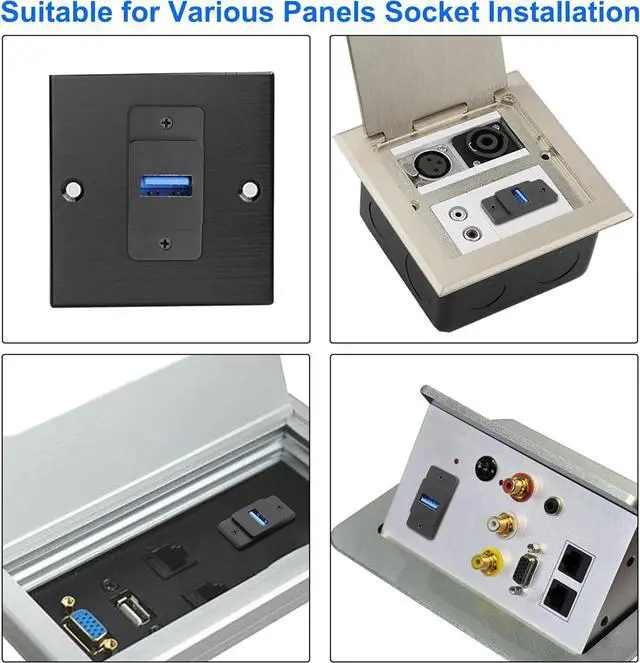 Wide ApplicationUSB 3.0 rectangular connector socket, suitable for connecting computers, laptops, media players, and other devices with USB-A ports. The adapter's rectangular metal shell supports easy panel installation on various surfaces such as home appliance circuit boards, desktops, walls, furniture, and dashboards.