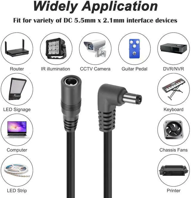 High-Quality MaterialMEIRIYFA DC Splitter Cable 90 Degree Right Angle Male to Female is made of 22AWG 100% brand new high-quality cable with premium copper wire inside, featuring lower resistivity and much better electrical conductivity, can realize pure power transmission and noise isolation.