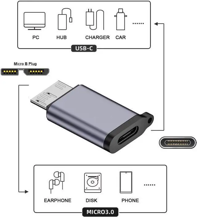 USB-C USB 3.1 Type C Female to Micro USB 3.0 Male Data Adapter 10Gbps Data Power with Chain for Laptop SSD Disk