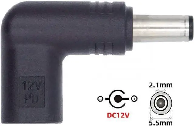 USB 3.1 Type C USB-C Female to DC 12V 5.5x2.1mm Plug Adapter PD Emulator Trigger 90 Degree Angled