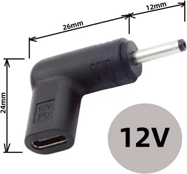 USB 3.1 Type C USB-C Female to DC 12V 3.5x1.3mm Plug Adapter PD Emulator Trigger 90 Degree Angled