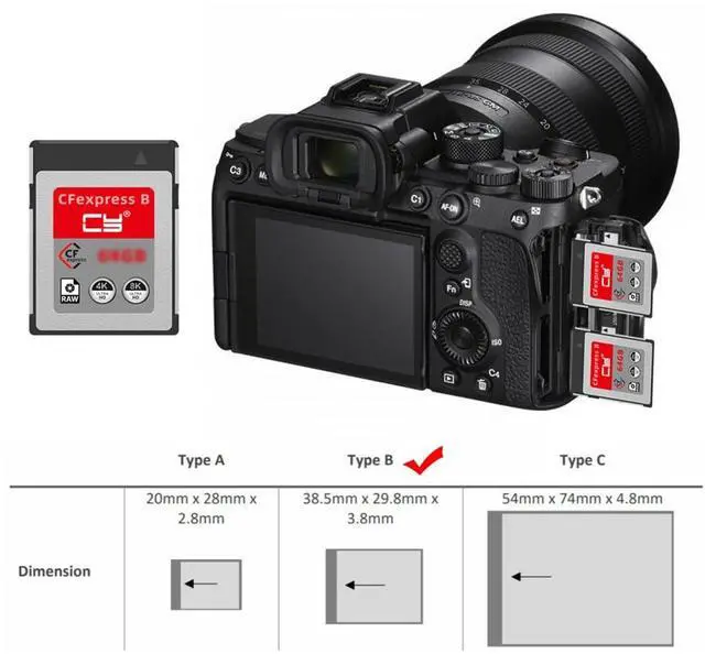 • CFexpress Type-B 64-256GB Memory Card CFE CFB Adapter Compatible with XS Camera 8K RAW PCIe Expansion.