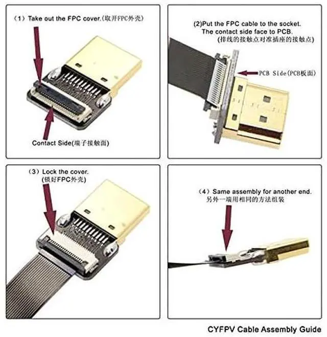 CYFPV Dual 90 Degree Right-Up Angled HDMI Type A Male to Male HDTV FPC Flat Cable for FPV HDTV Multicopter Aerial Photography 10CM
