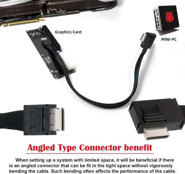 Data transfer rate up to 64Gbps, Transmits PCI Express 4.0 signals using the oculink protocol.