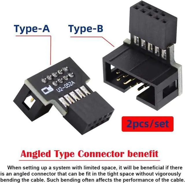 1set Down & Up Angled USB 2.0 10Pin 9Pin Header Male to Female Extension Adapter 90 Degree for Motherboard