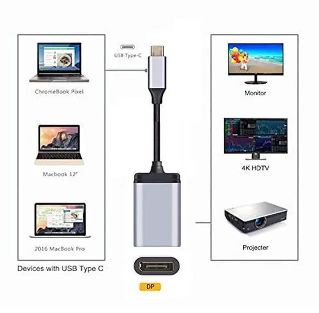 USB-C Type C to Displayport Monitor DP Cable Adapter 4K 2K 60hz for Tablet & Phone & Laptop