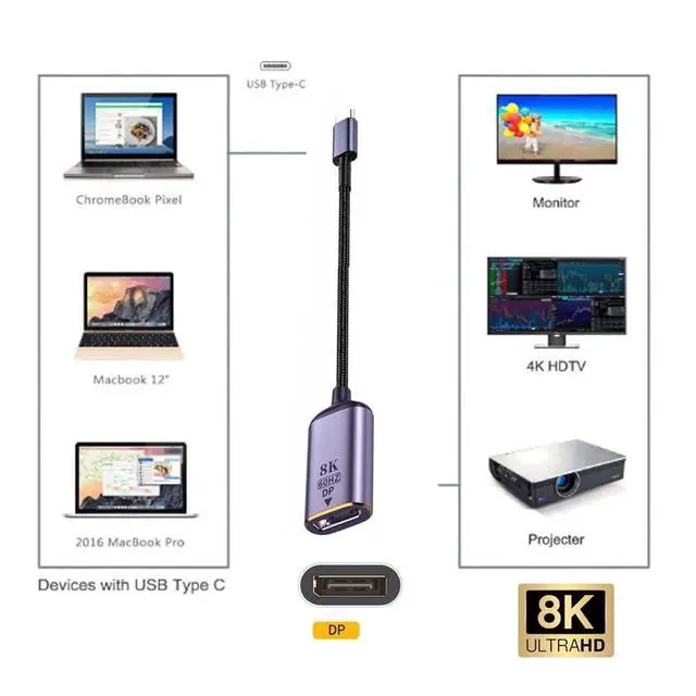 USB4 USB-C Type-C Source to Displayport DP Female Cable Display 8K 60HZ UHD 4K Monitor Displays