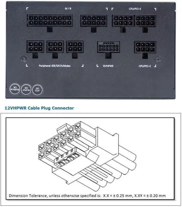 1. PCI-SIG 12VHPWR H+ , including 12 pin power supply terminal, and 4 pin signal terminal on the side,Capable of delivering up to 600W of power.