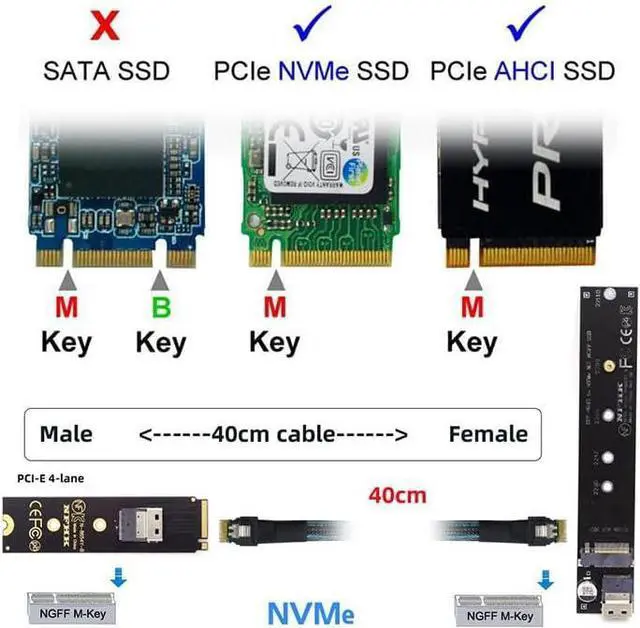 NGFF M-Key NVME Male to Female Extension Cable 40cm with SFF-8654 Connector for Mainboard SSD 2280/22110