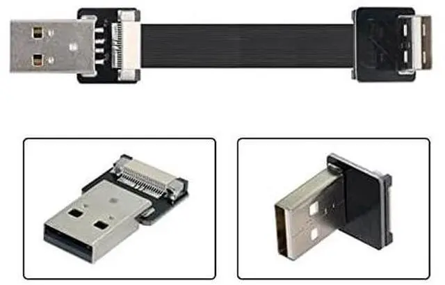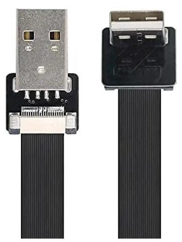 Down Angled USB 2.0 Type-A Male to Type-A Male Data Flat Slim FPC Cable 90 Degree for FPV & Disk & Scanner & Printer 200cm