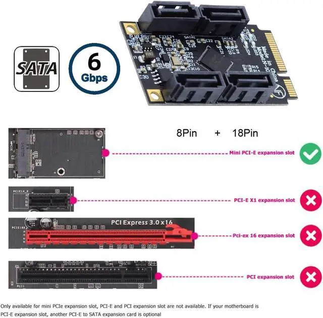 Mini PCI-E PCI Express to SATA 3.0 Four Ports Adapter Converter 6Gbps Hard Drive Extension Card for SSD
