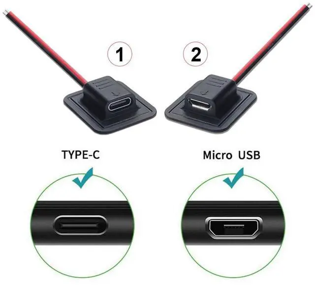 2pcs/set DIY OEM Type A Female Socket to 2Pin Open Cable Latch Mount Type DC 5V Power