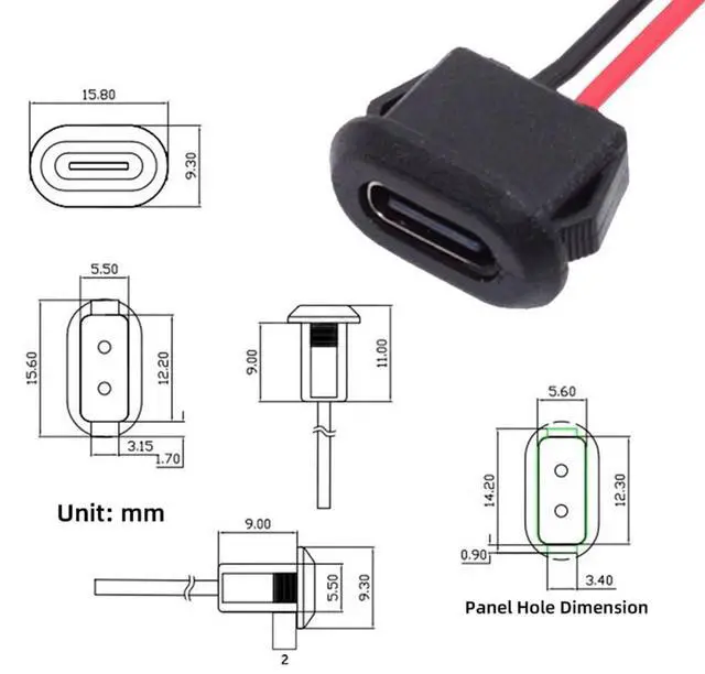 2pcs/set DIY OEM Type A Female Socket to 2Pin Open Cable Latch Mount Type DC 5V Power