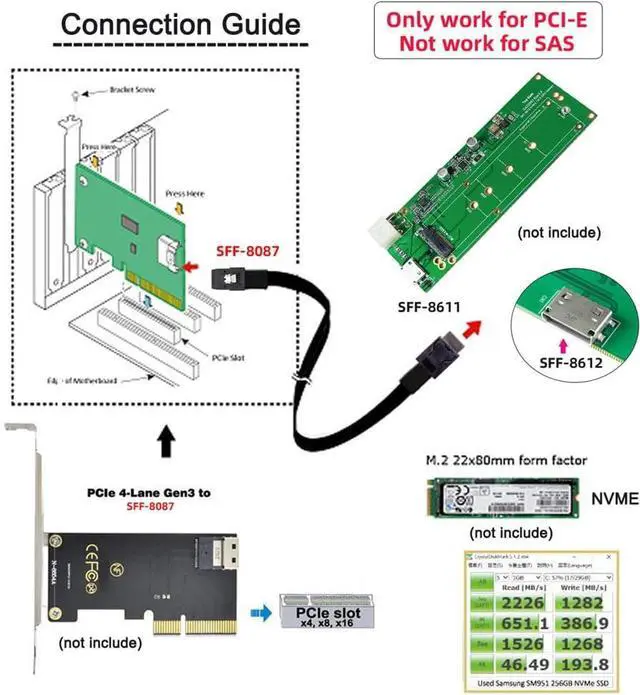 The cable only work for PCI-E, not work for SAS. OCuLink SFF-8611 male to SFF-8087 male