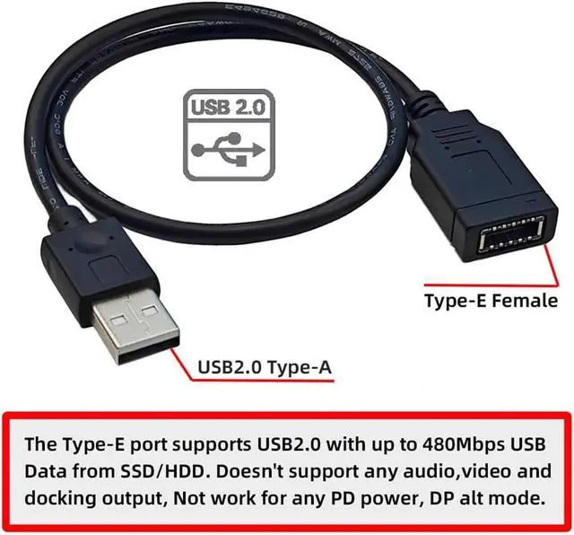 2) The Type-E port supports USB2.0 with up to 480Mbps USB Data from SSD/HDD.