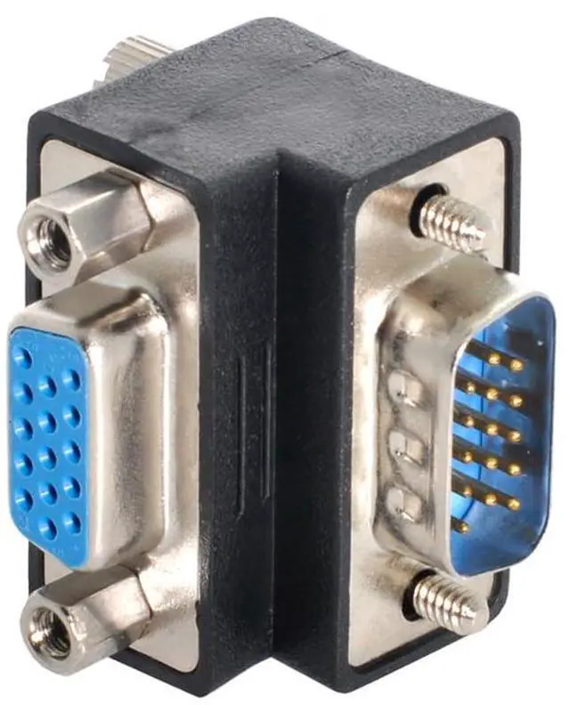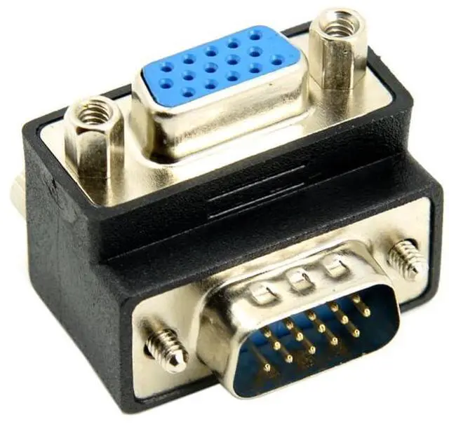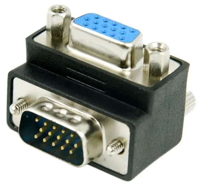 • This Angled VGA to VGA Cable Adapter Type 2 provides one right angled VGA male connector and one standard VGA female connector.