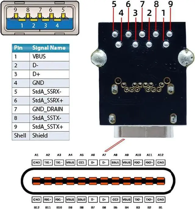Two pinout at the connector, Please check the micro usb pinout is standard or reversible pinout when you solder it.You need to solder the connector yourself. Proficien in manual soldering techniques is required.