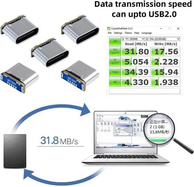 Compliant with USB Base Specification 2.0, Output USB Type-C interface. Compliant with USB 2.0 Hi-Speed (480Mbps), USB 1.1 Low-Speed (1.5Mbps).