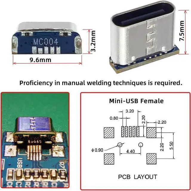 Two pinout at the connector, Please check the micro usb pinout is standard or reversible pinout when you solder it.You need to solder the connector yourself. Proficien in manual soldering techniques is required.