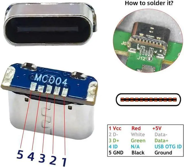 5pcs/lot in the package, The Type-C female connector is replaced for Micro USB 5Pin Female; For DIY OEM solder use.