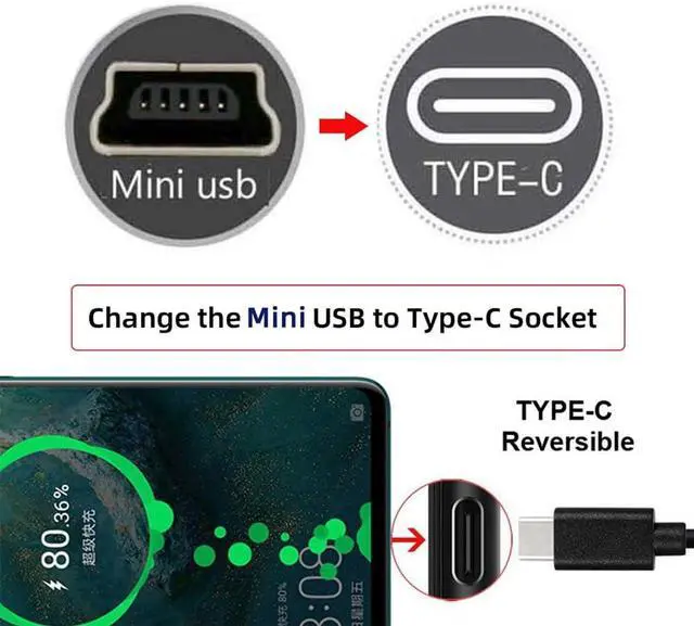 The hole of Micro-USB is larger than that of Type-C. You need to repair the hole yourself when changed the plug.Fast power and data,Offers a throughput of up to DC 5V 2A when used with a Type-C USB2.0 power and device.