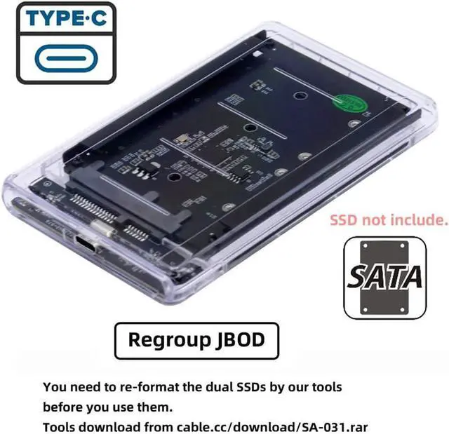 • Dual MSATA to SATA+USB-C Enclosure