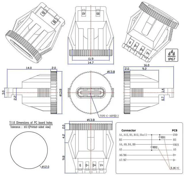Scew-Mounting: A great solution to continuing your USB-C connection to your cabinet device. It features a screw nut mount Connect your cable to the Type-c female screw mount to continue your USB power.
