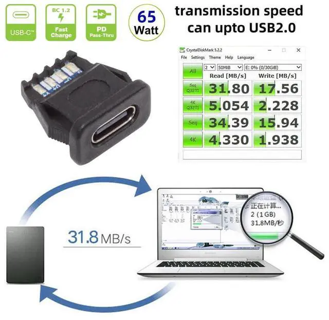 Data transfer: Support USB2.0 port and 480Mbps Data rate, High speed data transfer. Experience fast data transfer speed with the USB-C.