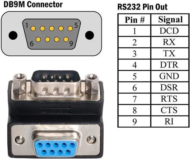 3. A Left angled 9 pin DSUB plug to socket adapter.