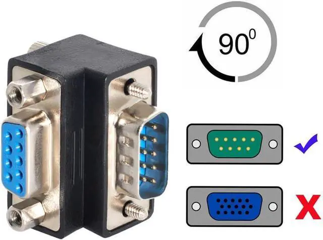 • 9 pin density plug to socket adaptor. Two rows contacts 90 Degree Angled Adapter.