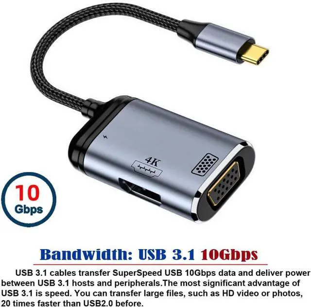 USB-C Type C to HDMI VGA Converter HDTV Multiport Displays Adapter 4K 60hz 1080p with Female PD 100W Power Port