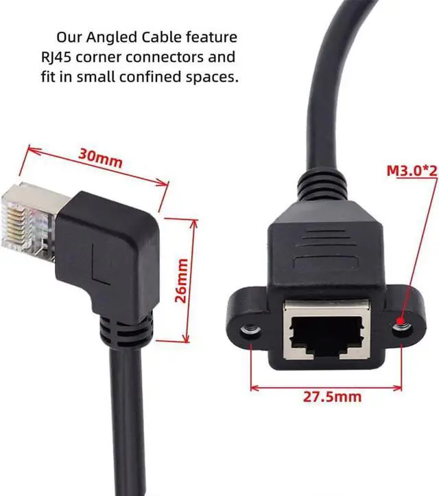 1. The RJ45 angled type Allowing you to connect it to a female port, even if space around the port is limited.